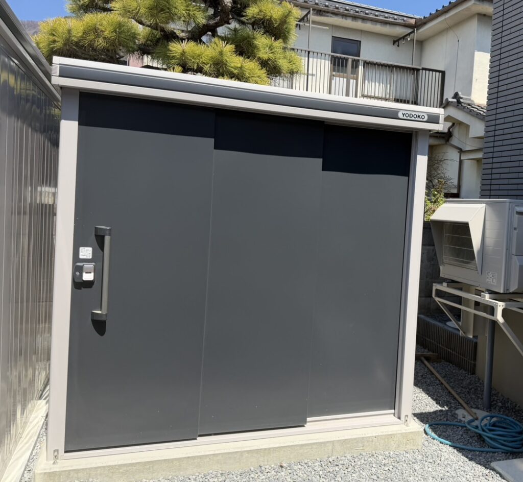今回はバイクガレージ・物置の外構工事を手掛けさせていただきました。